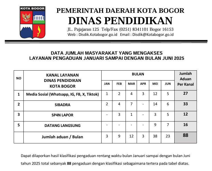 REKAPUTILASI JUMLAH ADUAN SELESAI PERIODE JANUARI-JUNI 2025